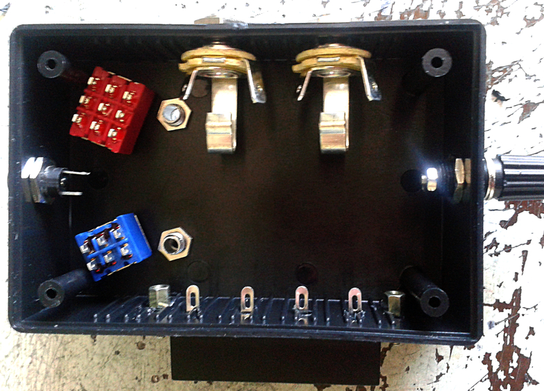 2) reverse the guitar and output jacks - because most pedals load on the left. When you turn the box around so the four in/out circuit terminals are in front - the guitar/amp jacks are reversed so the guitar is on the right.