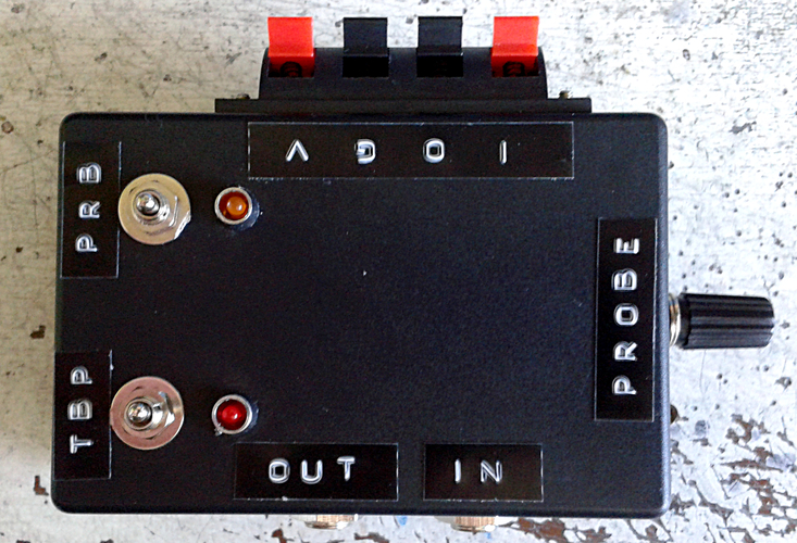 ReplyDeleteYou are not using the multimeter as a probe, only the test lead of the multimeter. Unclip 1 of the leads from your multimeter, clip it on to the binding post, flip the probe switch and start probing. To answer your earlier questions, yes the probe does work through the output of the test box connected to your amp. The probe led is only to signal that the probe is on. The led connected to the bypass switch is also only an indicator that the switch is on, exactly the same as you would do with the foot switch of a pedal.