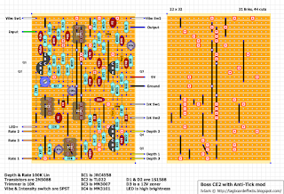 As an added bonus, here's an add-on stereo daughterboard option. Note that a stereo option isn't available for the CE-2 and so this has been inferred from the implementation in the CE-3. It should be good to go but should still be considered experimental until someone verifies, and so at this stage it's one for the tweakers.