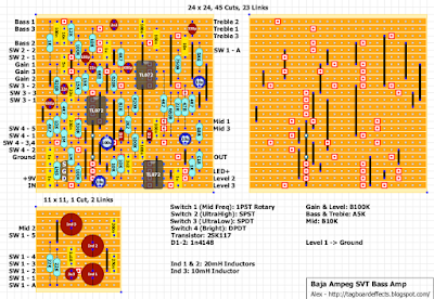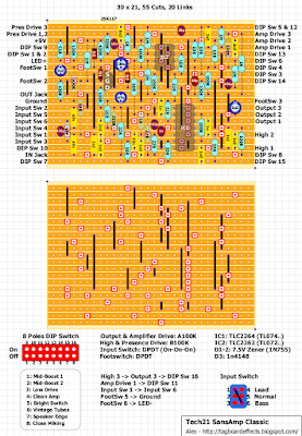 Here's a collection of vero (stripboard) and tagboard guitar and bass effect layouts that we have put together covering many classic and popular effects in growing numbers. Many of these have been posted on freestompboxes.org, so check that site out for great discussions on building your own effect pedals. Enjoy the builds and please also visit us on Facebook and Twitter